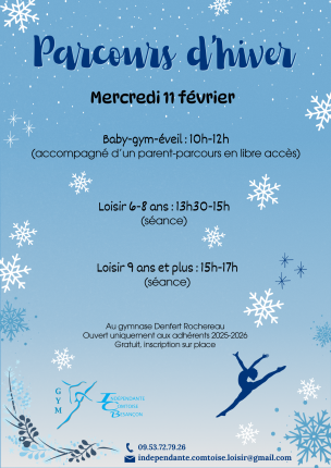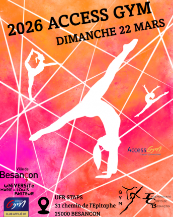 Une rencontre AccessGym pour les enfants des groupes Gym Agrès aura lieu le dimanche 22 mars !!! Un e-mail a été envoyé le 2/02/2026 aux parents des enfants inscrits en Gym Agrès au sujet de la rencontre AccessGym qui aura lieu le dimanche 22 mars à l’UFR STAPS à Besançon. Vous avez jusqu’au 1er mars […]
