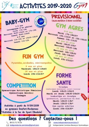 Stages d’été – du 8 au 11 juillet 2019 Gym le matin et activités l’après-midi