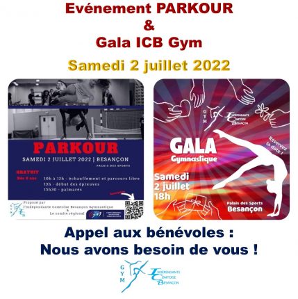 Chers adhérents, L’ICB Gym vous propose un Événement Parkour (Freestyle) : Samedi 2 juillet 2022 au Palais des Sports de Besançon Gratuit pour les spectateurs et les participants Venez entre amis ou en famille pour regarder (entrée libre sans inscription) ou pour pratiquer cette discipline (inscription obligatoire). Initiation et entraînement : 10h à 12h (dès 9 ans) Compétition […]